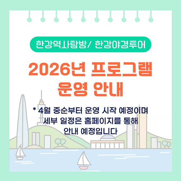 2026년 한강역사탐방 및 한강야경투어 운영일정 안내
